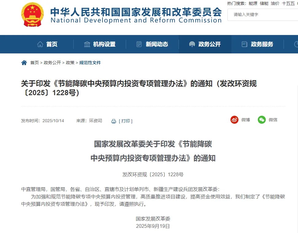 国家发展改革委10月14日消息,国家发展改革委近日印发的《节能降碳中央预算内投资专项管理办法》(以下简称《办法》)指出,支持石化、化工等重点行业节能降碳改造,支持煤化工项目低碳化改造。